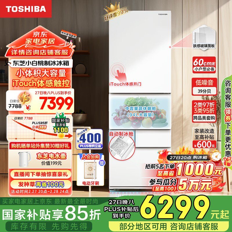 东芝GR-RM429WE-PG2B3风冷多门冰箱小白桃日式5门京东特惠