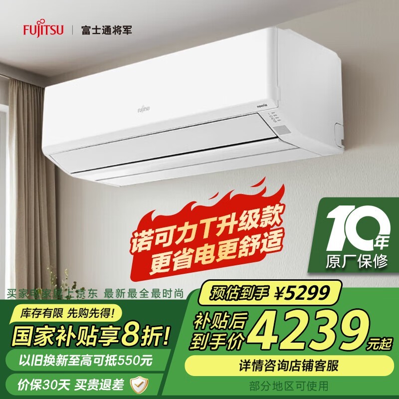 富士通诺可力T壁挂式空调1.5匹一级能效京东补贴价