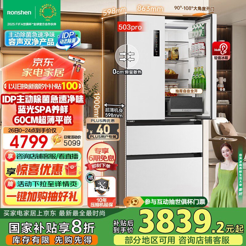容声503升Pro双净IDP法式冰箱底部散热促销到手3610元