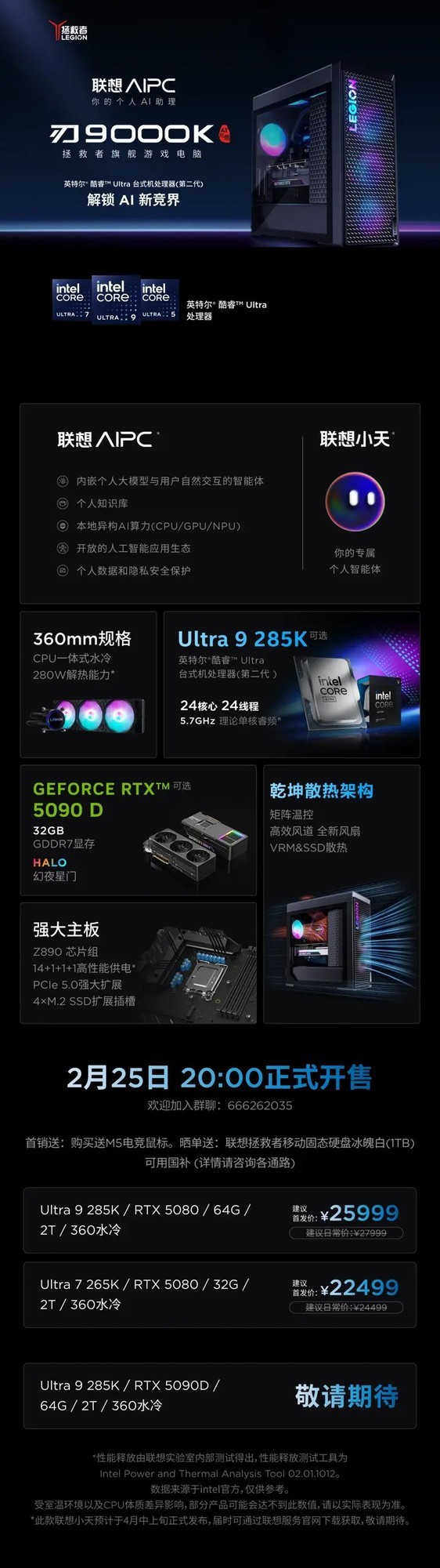 联想在昨日的发布会上除了发布有YOGA系列的新品外,还发布了全新升级的刃9000K 2025 AI 元启版,其搭载了Intel酷睿Ultra系列处理器,最高可选Ultra 9 285K,显卡方面则搭载了最新的RTX 50系列,至高可选RTX 5090D。