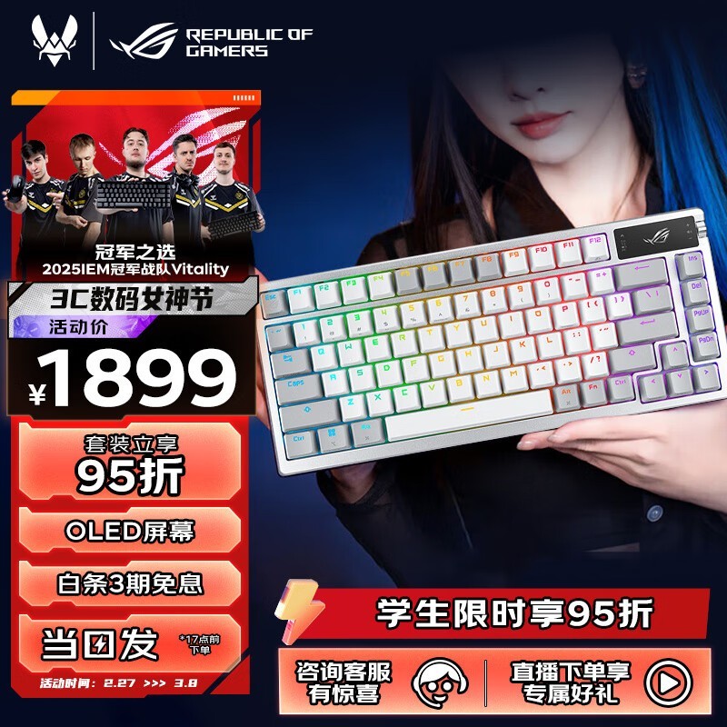 ROG夜魔81键机械键盘NX雪武白轴三模连接京东特惠