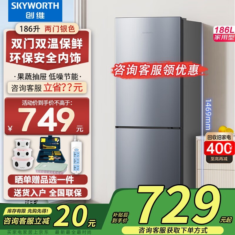 创维BCD-186D小型双门冰箱促销中