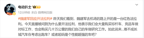 长城魏建军回应为什么要开法拉利:为技术对标研究