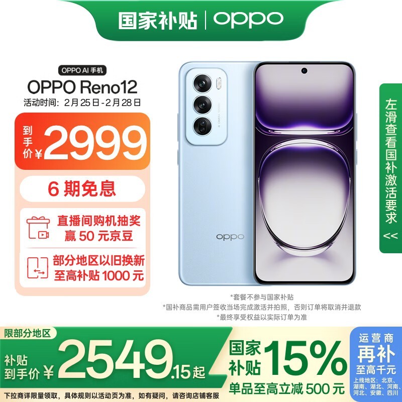 OPPO Reno12 5G手机晨雾蓝16GB+512GB京东特惠仅2247元