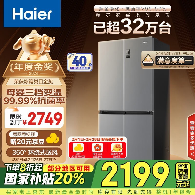 海尔465L风冷十字对开门冰箱节能大师系列母婴专属存储