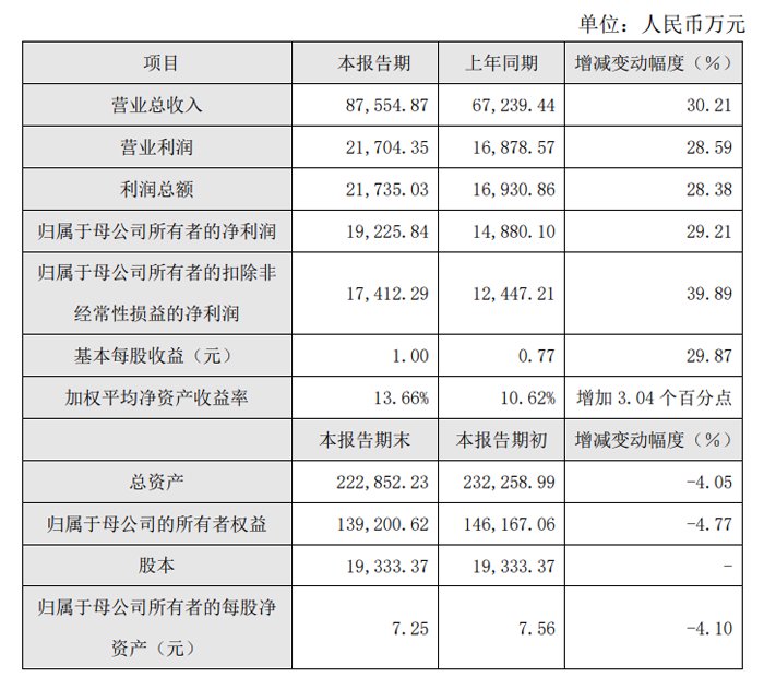 报告期内,深圳市路维光电股份有限公司实现营业总收入87,554.87 万元,同比增长 30.21%;实现营业利润 2.17亿元,同比增长 28.59%;实现利润总额 21,735.03 万元,同比增长 28.38%;实现归母净利润 1.92亿元,同比增长29.21%;实现扣非净利润 17,412.29 万元,同比增长 39.89%。