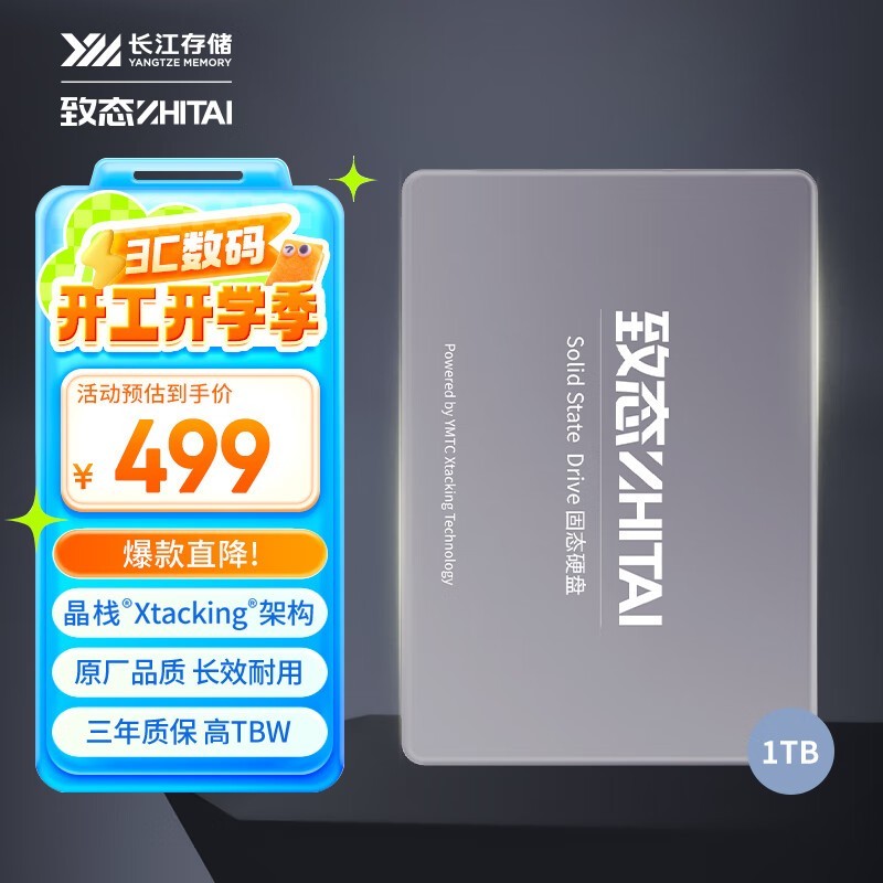 致态SC001 XT 1TB固态硬盘仅499元京东好价