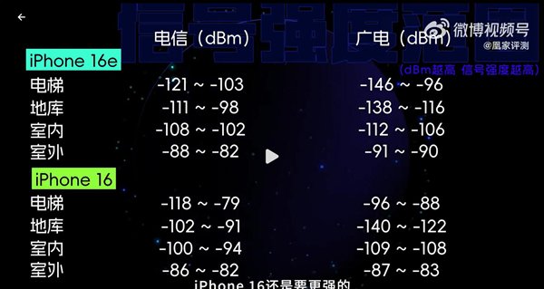 信号方面,在电梯、地库、室内和室外等场景下,iPhone 16e的整体信号强度不及iPhone 16。