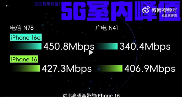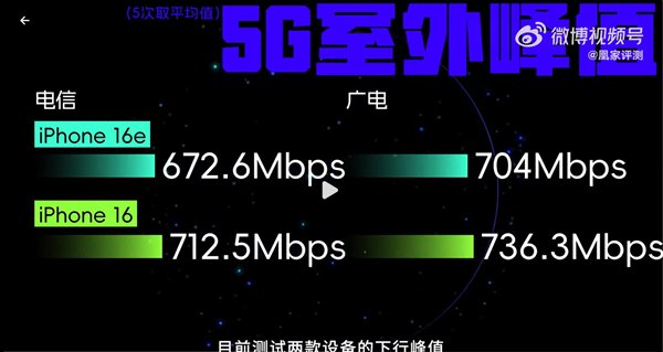 但在5G室外场景,iPhone 16e的电信、广电网络峰值速率都不及iPhone 16,前者的速率分别是672.6Mbps、704Mbps;后者速率分别是712.5Mbps、736.6Mbps。
