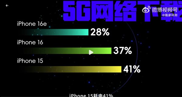 不过iPhone 16e自研5G基带相比高通基带更加省电,实测5G网络下载《原神》28G数据包,iPhone 16e耗电是28%,iPhone 16和iPhone 15的耗电量分别是37%和41%。