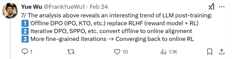 上述分析揭示了大型语言模型(LLM)后训练阶段一个有趣的发展趋势: