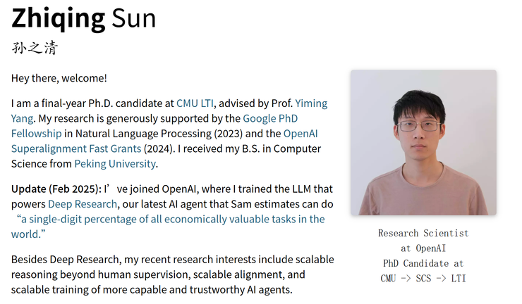 雷峰网(公众号:雷峰网)还了解到,与他同为第一作者的 Zhiqing Sun ,目前已经从 CMU 毕业,并在今年 2 月加入 OpenAI。