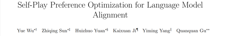 在这则爆料中,博主 Yue Wu 先是对 SPPO 进行了简单解释,并且附上了相关论文(https://arxiv.org/abs/2405.00675),简单来说,SPPO是一种自博弈算法,最初的动机来源于刻画广泛意义上的人类偏好,并且使用了如下图所示的平方损失函数: