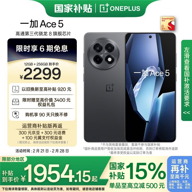 一加Ace 5 5G手机促销:1920元到手享多重好礼