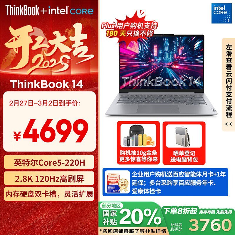 ThinkPad ThinkBook 14 2025酷睿版轻薄本14英寸2.8K屏