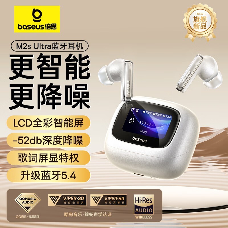 倍思M2s Ultra真无线蓝牙耳机52dB主动降噪京东活动价253.78