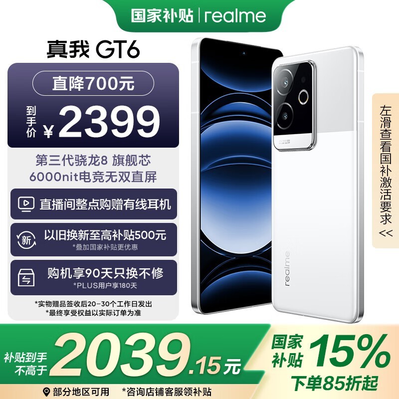 realme GT6 5G手机光年白 骁龙8 Gen3 处理器 16GB+256GB