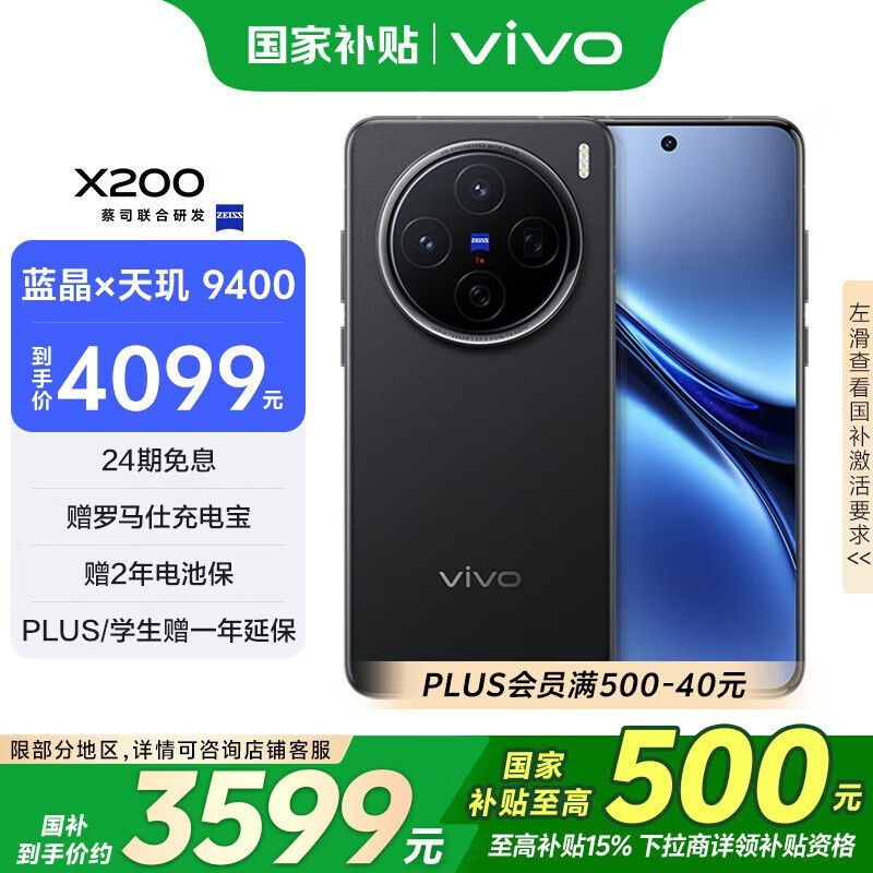 vivo X200 5G手机12GB+256GB辰夜黑京东活动价3437元