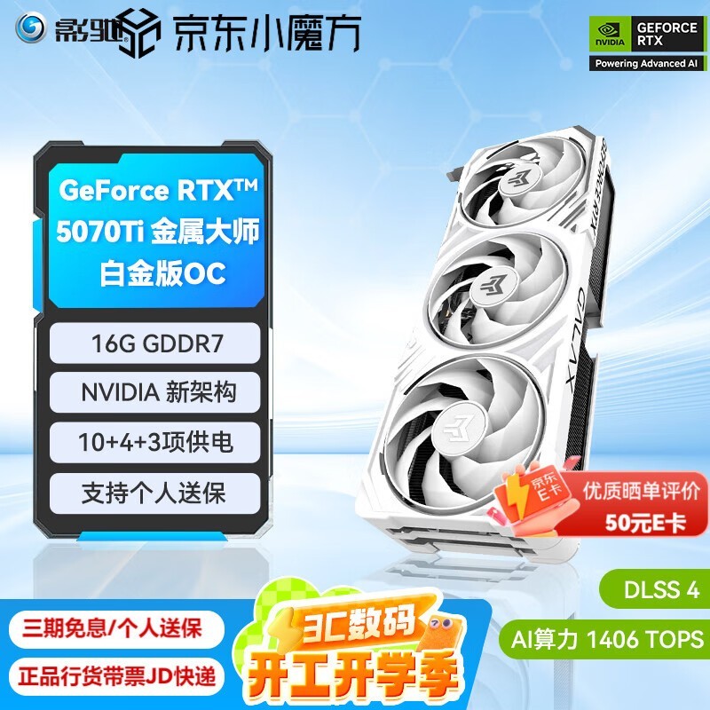 影驰RTX 5070 Ti 16G显卡京东特惠7449元