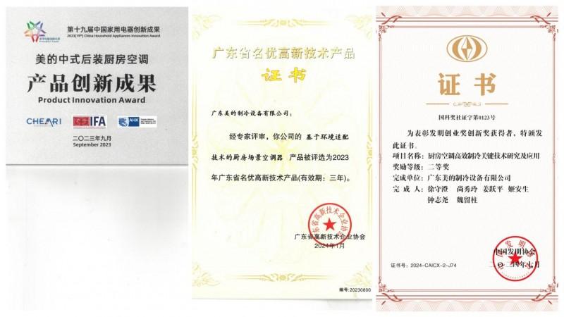 美的厨房空调在近年来屡获殊荣,彰显了其在技术创新和产品品质方面的卓越表现。2023年,美的中式后装厨房空调在“第十九届中国家用电器创新成果推介”活动中,荣获年度产品创新成果奖。2024年,美的基于环境适配技术的厨房场景空调器产品,被广东省高新技术企业协会评选为“广东省名优高新技术产品”。此外,美的厨房空调的“厨房空调高效制冷关键技术研究及应用”项目,荣获中国发明协会颁发的发明创业奖创新奖二等奖。