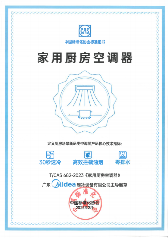 此次T/CAS 682—2023《家用厨房空调器》标准的入选,再次凸显了美的在厨房空调领域的领先地位。该标准涵盖了厨房空调的性能要求、试验方法、检验规则等多个方面,为厨房空调的生产、检测和销售提供了明确的规范和指导。美的作为该标准的主导制定者,充分展现了其在厨房空调领域的技术前瞻性和市场引领性,为行业的规范化发展树立了新的标杆。