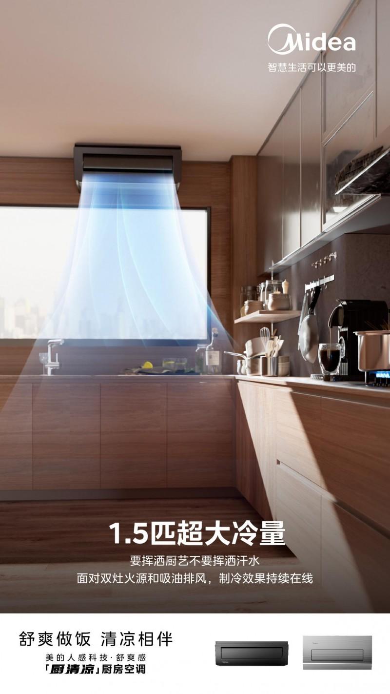 厨房作为家庭烹饪的核心场所,高温、高油烟、高湿度是常态,长期以来却因环境特殊性,普通空调难以满足需求。美的深入洞察用户痛点,凭借强大的研发实力和创新精神,成功推出专为厨房环境设计的空调产品。美的厨房空调采用行业领先的耐油烟腐蚀材料技术、重力流净化过滤组合技术、多介质混动强化换热技术,不仅能有效防油烟、耐腐蚀,还能实现冷凝水100%消耗的同时,制冷能力和能效均大幅提升,额定工况最高制冷量达3850W,超国内外同类产品6.9%,制冷季节能效SEER达到4.3,对比提升20.1%。此外,美的厨房空调还具备强劲的制冷制热性能,无论酷暑严寒,都能迅速调节厨房温度,为用户打造舒适宜人的烹饪环境,让下厨成为一种享受。