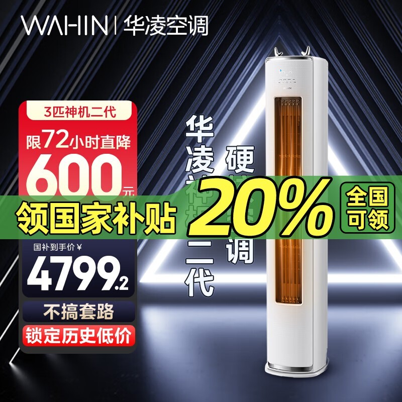 华凌3匹立式空调72HE1 II智能变频京东秒杀到手4529元