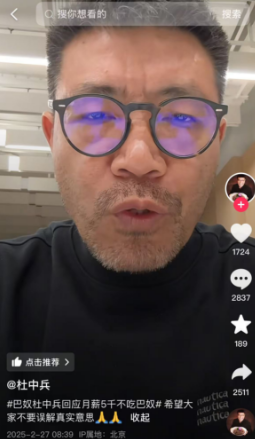 2月27日,巴奴火锅老板杜中兵对争议事件作出回应。他表示,“月薪5000就不要吃火锅,吃些麻辣烫就好了”等几句话不是连在一起说的。如果连在一起说,就把他的真实本意曲解了。
