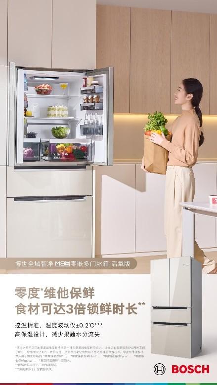 除了活氧净lite技术外,博世全域智净M8s零嵌多门冰箱活氧版还配备了零度维他保鲜技术。这一技术通过精准控温和维持一定湿度的方式,让食材在接近0°C但不低于0°C的环境中保持最佳保鲜状态。据厂家内部测试数据显示,采用零度维他保鲜技术的食材可达三倍保鲜时长,留存更多营养和口感。