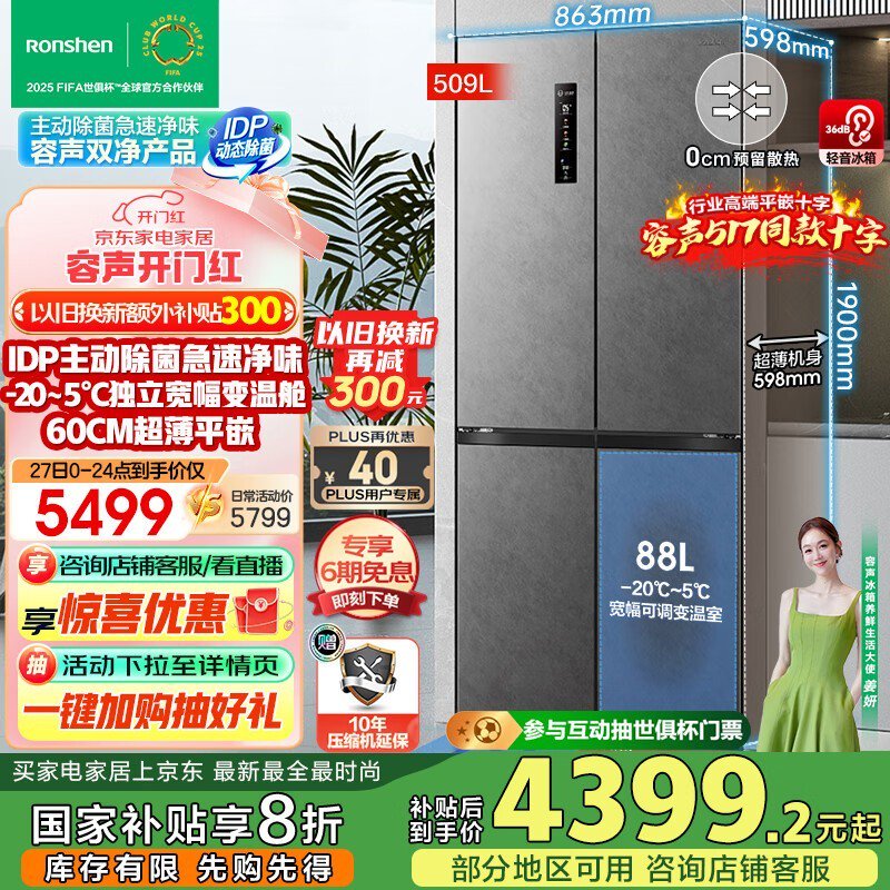 容声双净平嵌系列冰箱BCD-509WD2FPQLA京东特惠3588元
