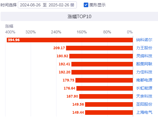其中,纳科诺尔区间涨幅高达394.96%。此外,厦钨新能、豪鹏科技、金发科技、万润新能、蓝海华腾、雄韬股份、容百科技7家公司股价涨幅已超90%,有望于近期实现**。
