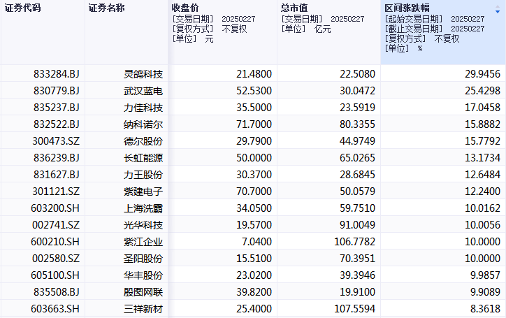 2月27日,上海洗霸触及涨停板。公司主营业务包括化学品销售与服务、水处理系统运行管理、加药设备销售与安装和水处理系统集成等。
