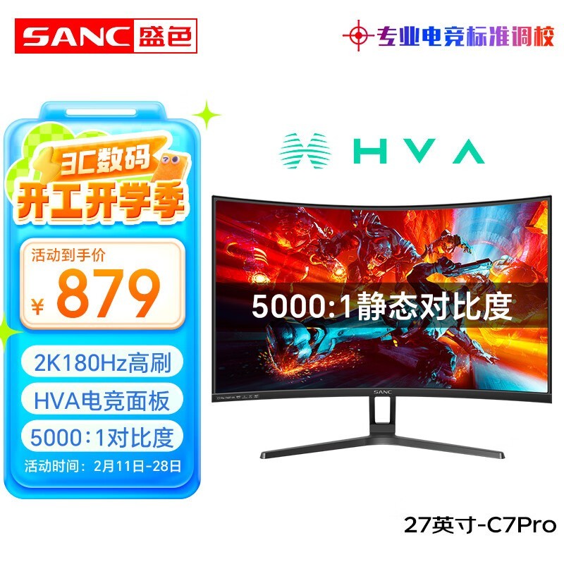 SANC C7Pro 27英寸2K显示器HVA面板132%sRGB广色域低蓝光不闪屏
