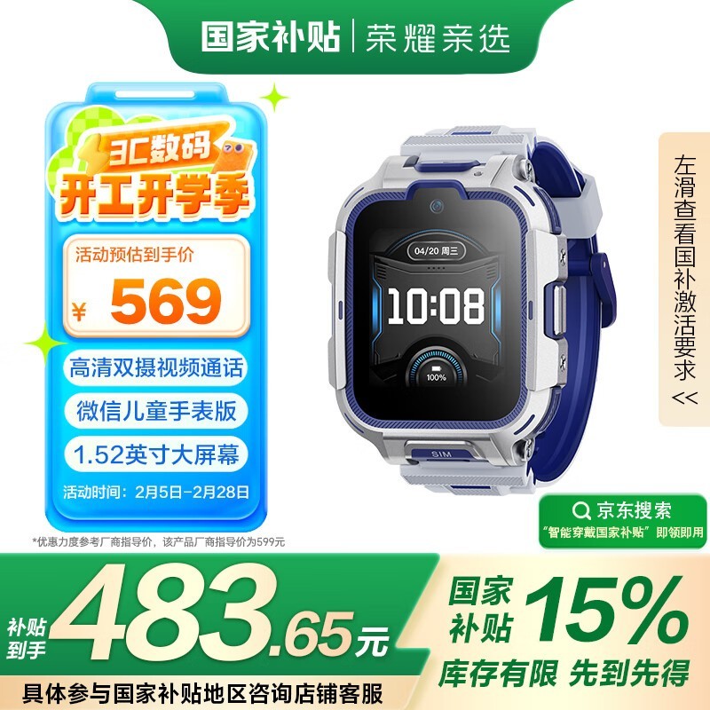 荣耀亲选儿童手表2Pro机甲蓝京东活动价445元