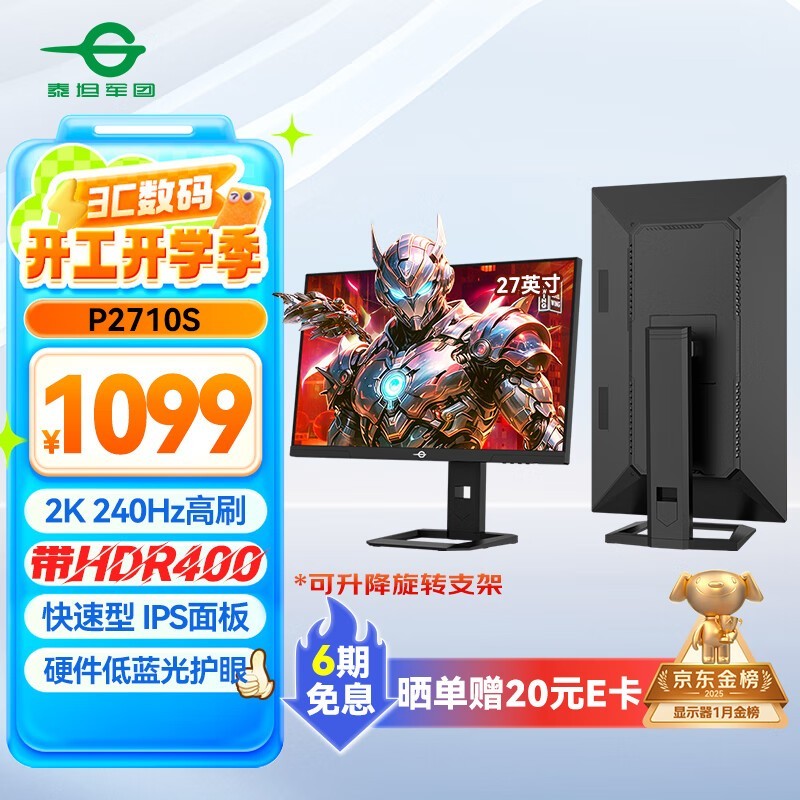 泰坦军团P2710S显示器27英寸2K240Hz仅979元
