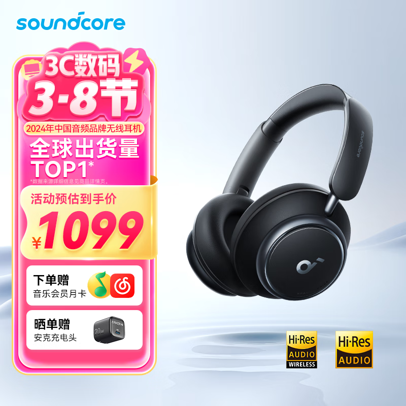 声阔Space Q45头戴降噪蓝牙耳机仅959元享三重动态滤噪