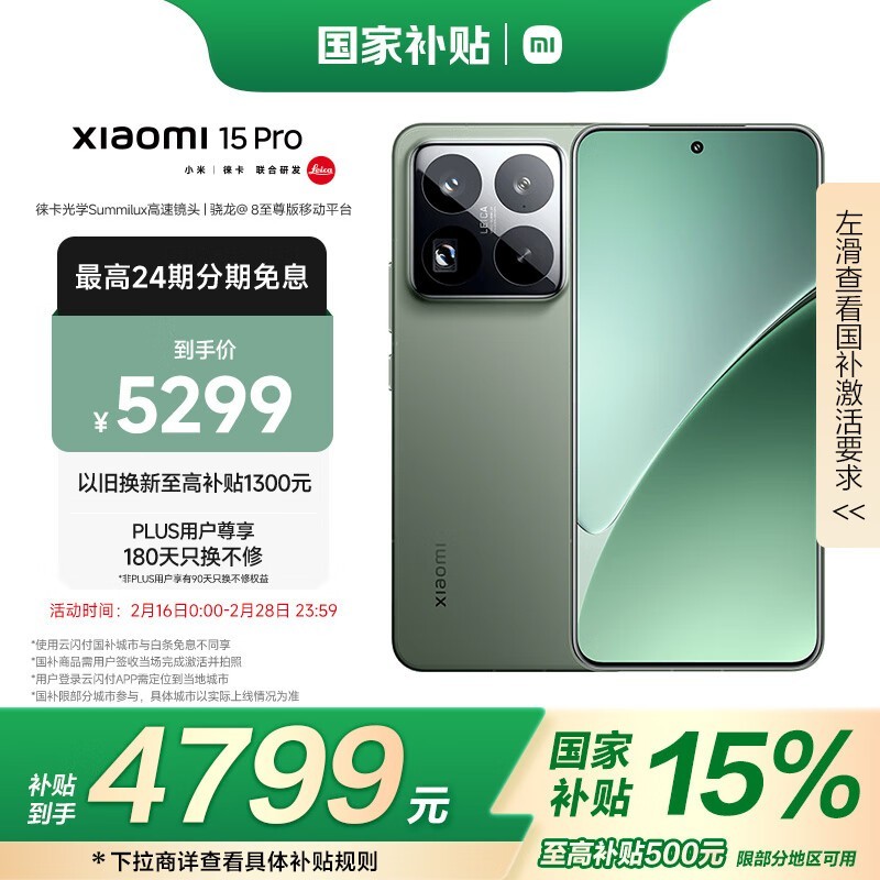 小米Xiaomi 15 Pro 5G手机云杉绿徕卡三摄澎湃OS系统