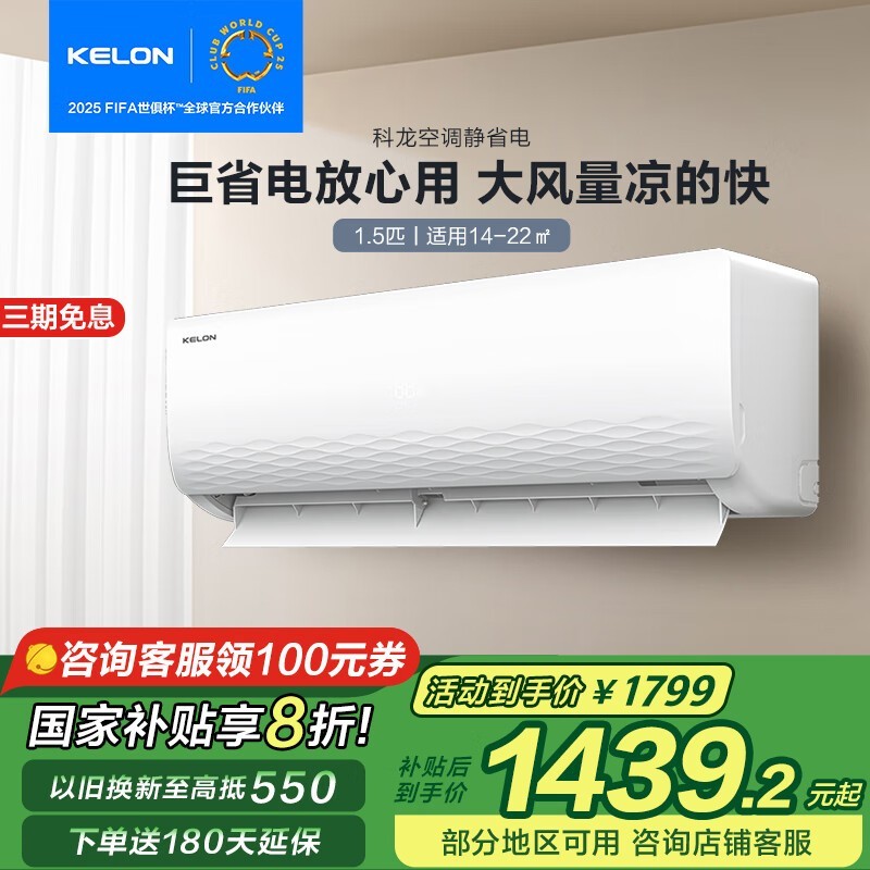 科龙1.5匹壁挂式空调新一级能效变频京东价1319元