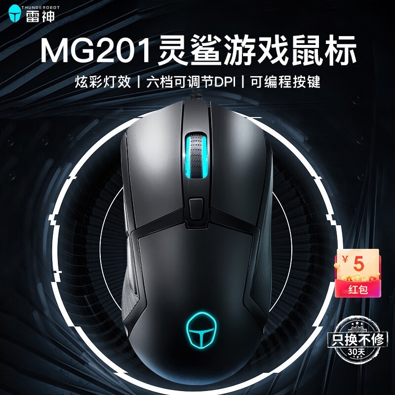 雷神MG201有线鼠标黑色游戏鼠标仅79元