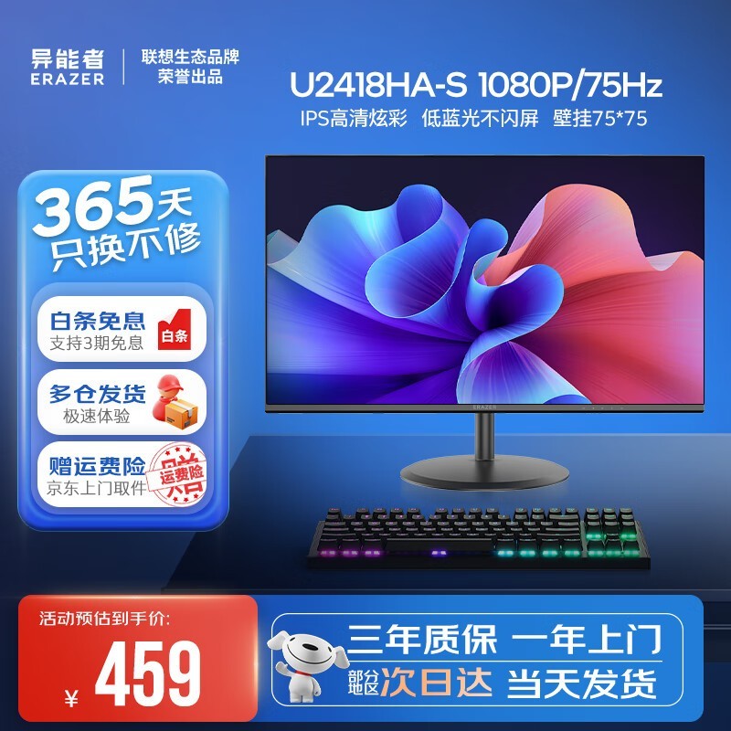 异能者ERAZER显示器23.8英寸100Hz高刷新率仅459元