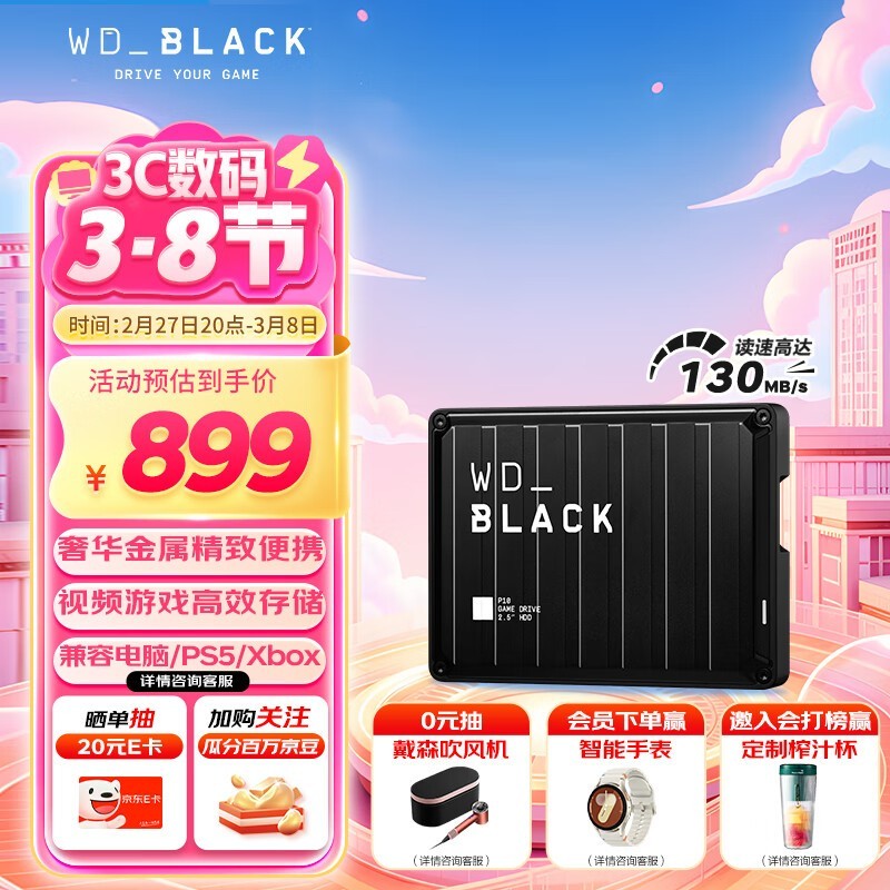 西部数据WD Black P10 4TB移动硬盘大容量外置硬盘