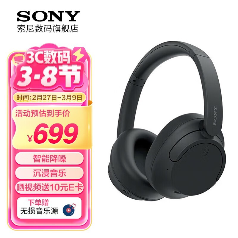 索尼WH-CH720N蓝牙降噪耳机黑色经典款舒适轻量化设计