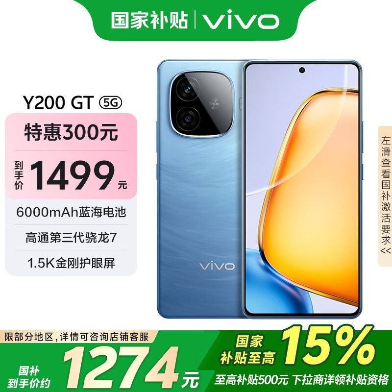 vivo Y200 GT 5G手机12GB+256GB风暴蓝雷鸣黑双配色仅1499