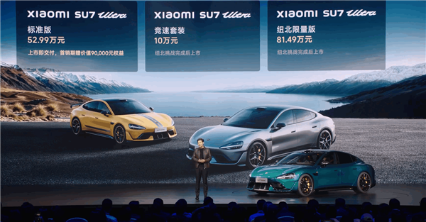 快科技2月27日消息,今日晚间,小米SU7 Ultra正式上市,共推出两款车型小米SU7 Ultra标准版,售价52.99万元和纽北限量版81.49万元。
