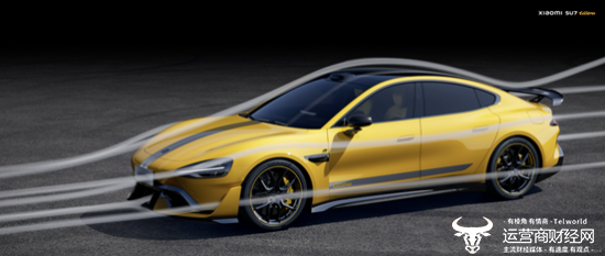 小米SU7 Ultra的设计围绕巅峰性能展开,新增的设计服务于功能性,没有多余的装饰。外观设计方面,在小米SU7 Max的基础上,小米SU7 Ultra加入了空气动力学套件,车身尺寸进一步加大,长、宽、高、轴距分别为5115mm、1970mm、1465mm、3000mm,车身更修长、更低趴,姿态更战斗。小米SU7 Ultra车头加入超大尺寸前铲和气坝,搭配U型风刀,有效增加车辆前部下压力。进气格栅开口进一步加大,散热面积增大10%。尾部新增主动尾部扩散器,两挡自适应调节,兼顾风阻与下压力,日常行驶低能耗;同时新增碳纤维固定式大尾翼,尾翼翼展达到1560mm,弦长240mm,高速行驶时带来可观的下压力。得益于全新的空气动力学设计,小米SU7 Ultra最大下压力可达285kg,媲美超跑级别车型。