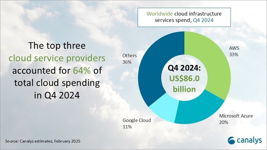 微软Azure在2024年第四季度仍然是第二大云供应商,占20%的市场份额,并实现了31%的年度增长。微软报告称,Azure的增长中有13%来自AI服务,AI服务同比增长了157%。2月,微软透露计划在2026年6月之前投资约7亿美元,以扩大其在波兰的超大规模云和AI基础设施。