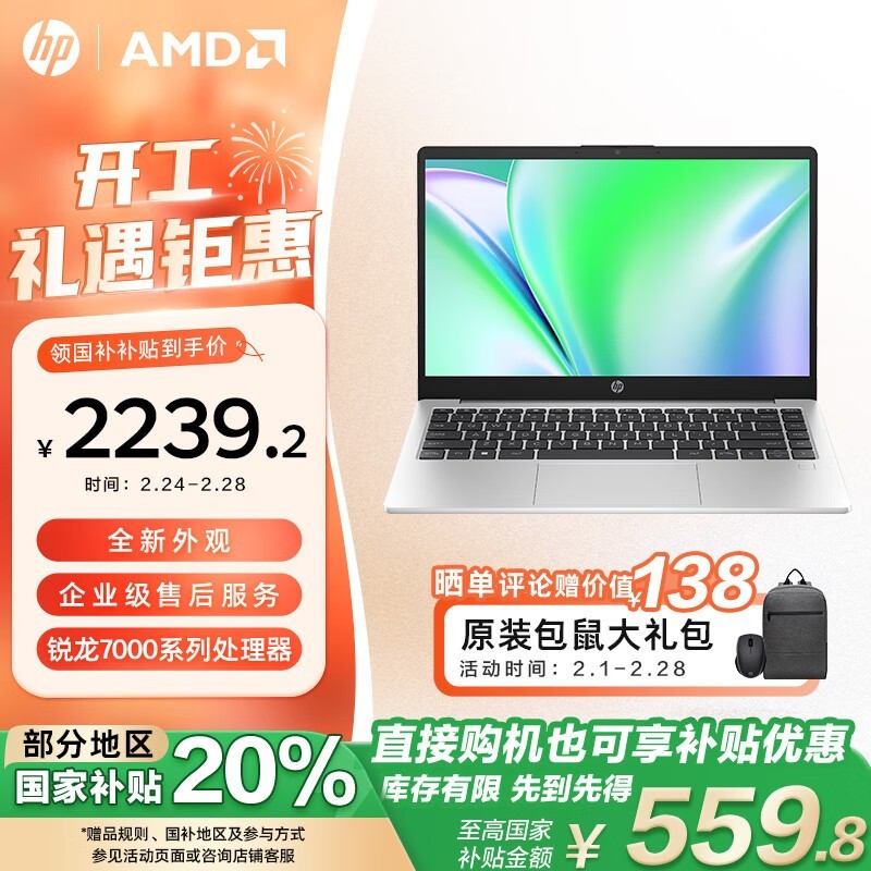 惠普锐14 2023款七代锐龙版笔记本电脑限时优惠