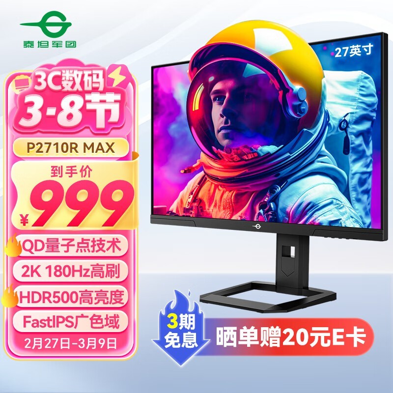 泰坦军团P2710R MAX显示器27英寸180Hz京东活动价810元