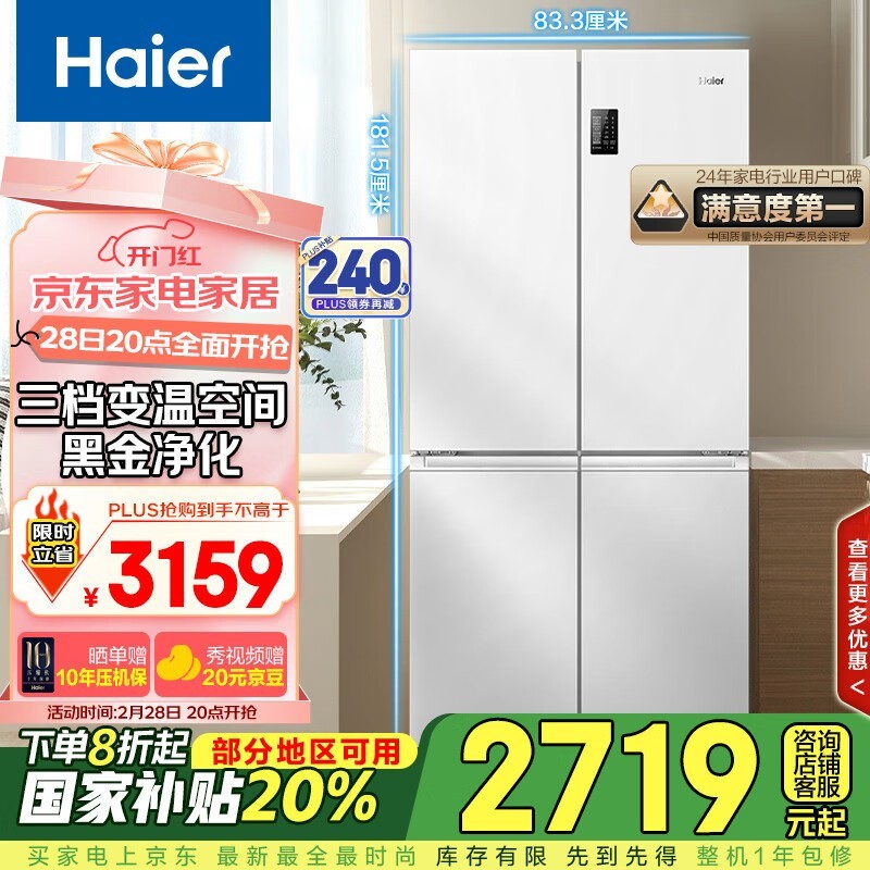 海尔539L风冷十字对开门冰箱BCD-539WGHTDEDWVU1促销
