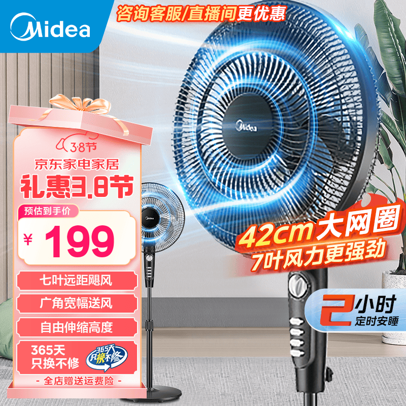 Midea美的SAF35MA落地扇黑色经典设计柔风体验